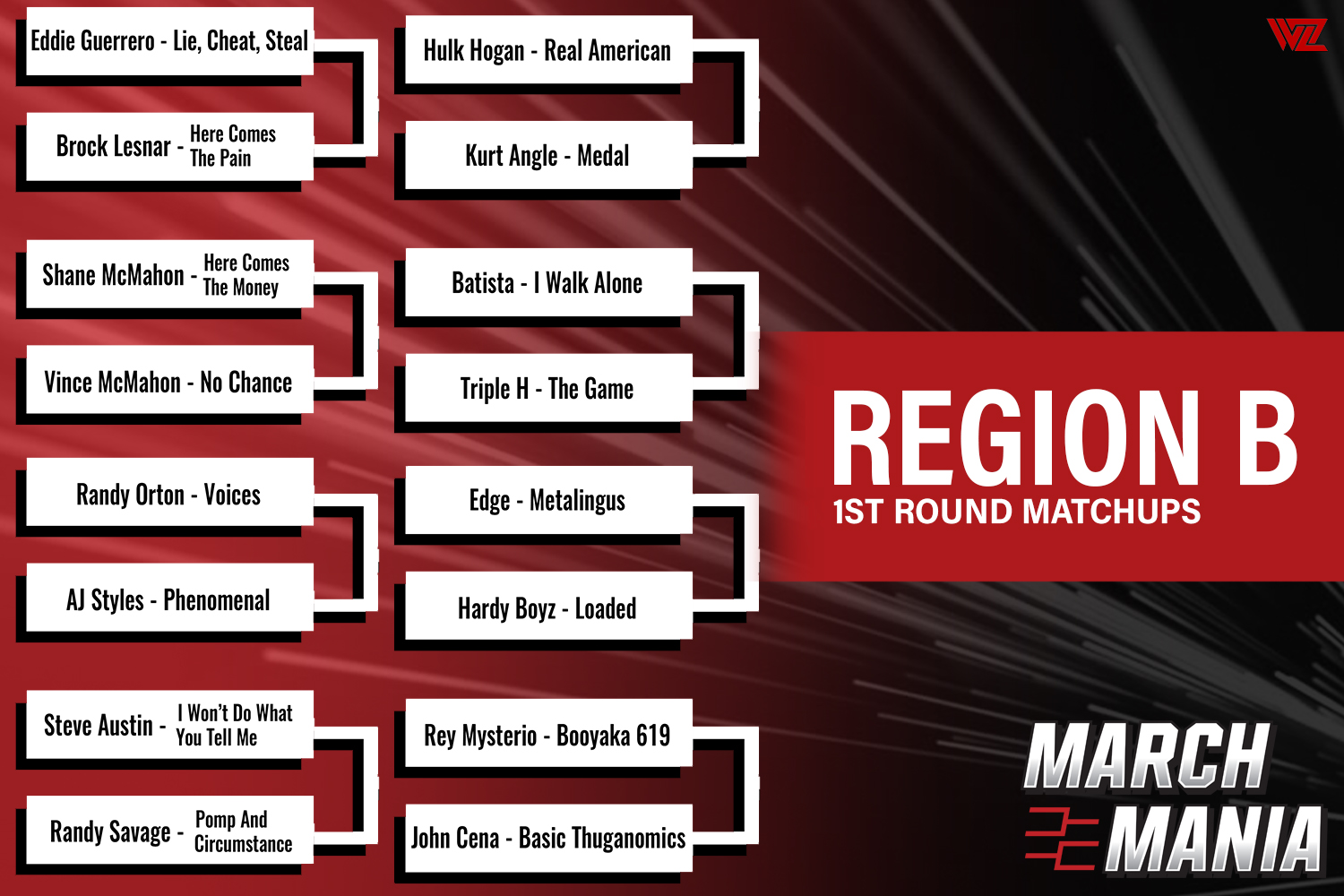 Voting will begin tomorrow as Wrestlezone March Mania kicks off on our Facebook and Twitter pages.