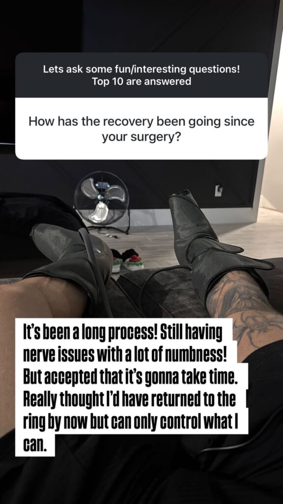 “It’s been a long process! Still having nerve issues with a lot of numbness! But accepted that it’s gonna take time. Really thought I’d have returned to the ring by now but can only control what I can.”