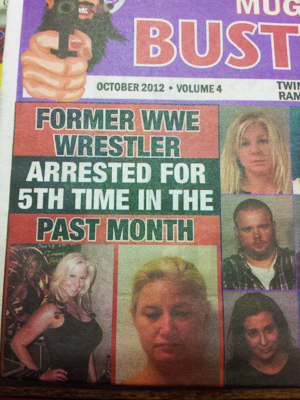 Former WWE Diva Tammy “Sunny” Sytch, who was recently arrested five times in four weeks, and entered a WWE rehabilitation facility, was featured in a local Minnesota edition of “Busted”. Her mugshot was featured, and can be seen in this photo, sent in by Wrestlezone reader Ben Russell: